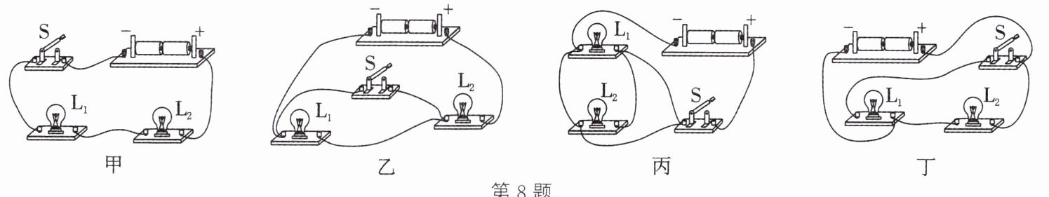 8. 如图所示,实验小组的同学连接了四个电路来探究开关的控制作用,下列判断正确的是()