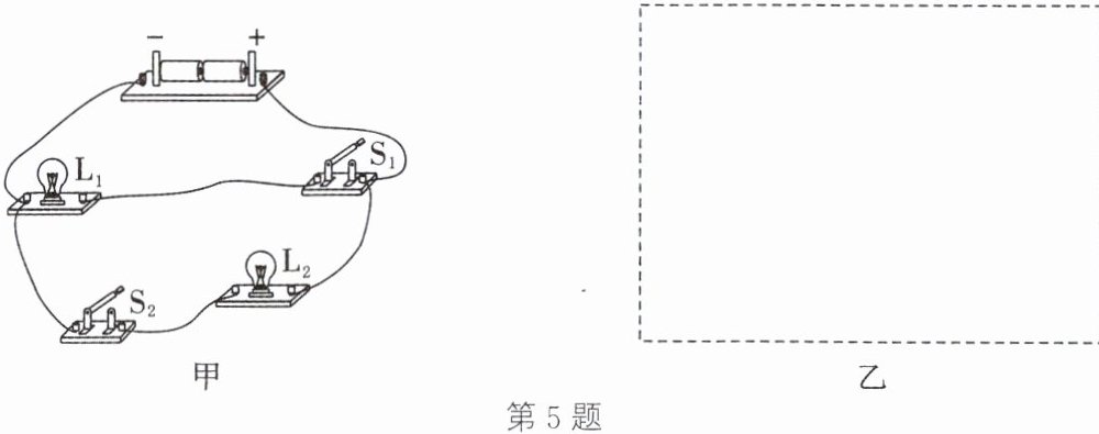 5. 根据如图甲所示的电路实物图,在如图乙所示的虚线框内画出电路图。