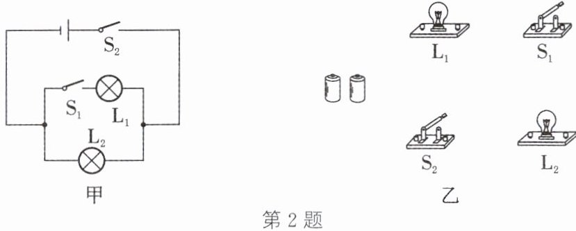 2. 请按照图甲中的电路图,把图乙中的实物连成电路。(要求连接时导线不交叉)