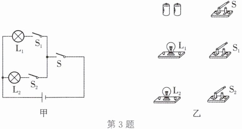 3. 请按照图甲中的电路图,将图乙中的实物连成电路。(要求连接时导线不交叉)