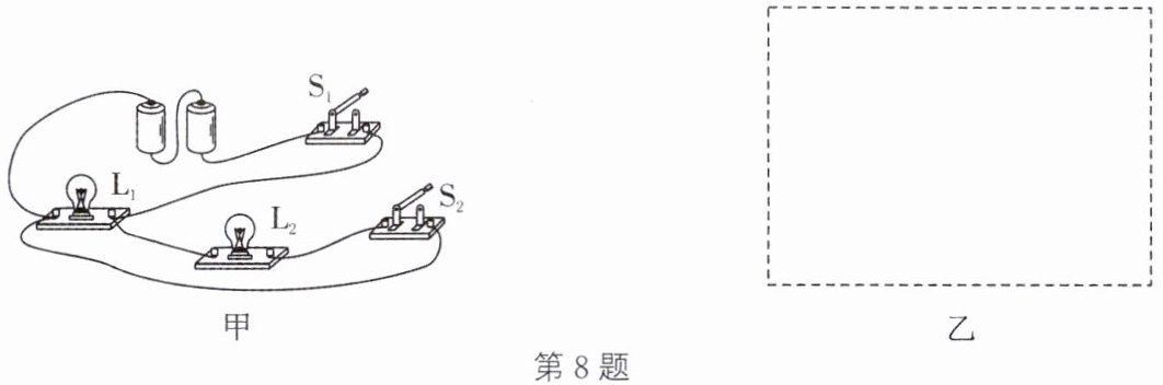8. 根据如图甲所示的实物图,在如图乙所示的虚线框内画出电路图。