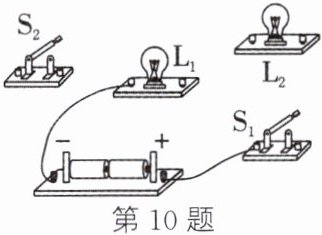 9. 用一根导线完成图中电路的实物连接。要求:两灯并联,$S_{1}$、$S_{2}分别控制L_{1}$、$L_{2}$。