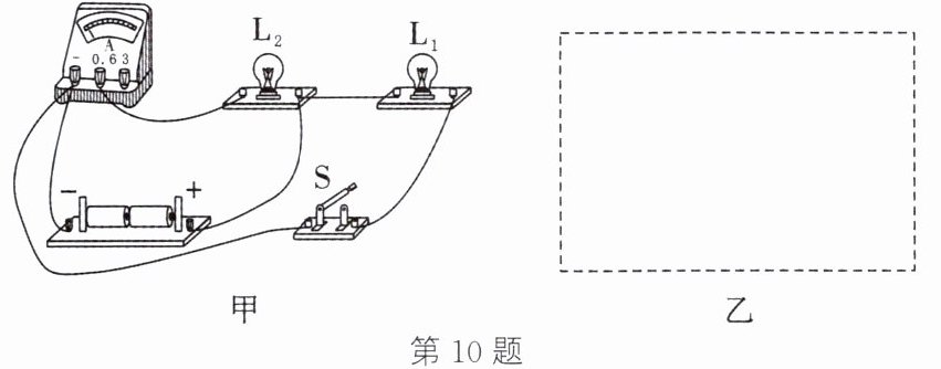 10. 根据如图甲所示的实物连接图,在图乙的虚线框中画出与它对应的电路图。