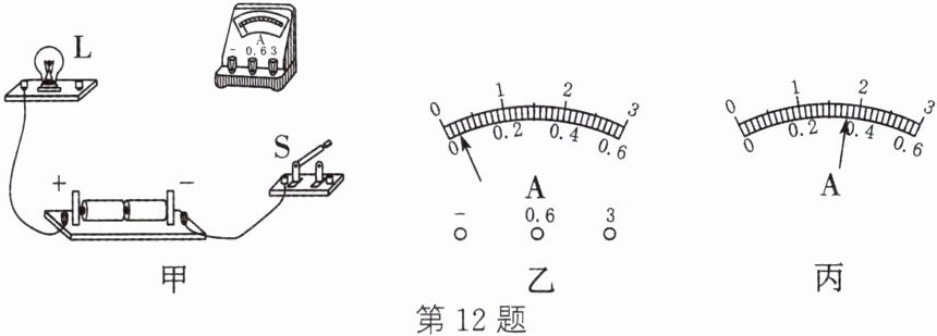 12. 在“用电流表测电流”的实验中,小明设计了如图甲所示的电路进行实验。