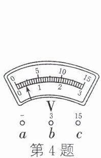 4. 在一次用有 0~3 V 和 0~15 V 两个量程的电压表测电压时,电压表的“一”接线柱已接入电路,在用 0~15 V 量程试触时,指针位置如图所示,则在下一步操作中,正确的是()