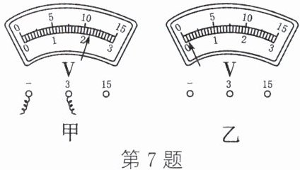 7. (1) 如图甲所示,电压表的分度值为______V,读数为______V;若使用前出现如图乙所示的情况,则原因是______。