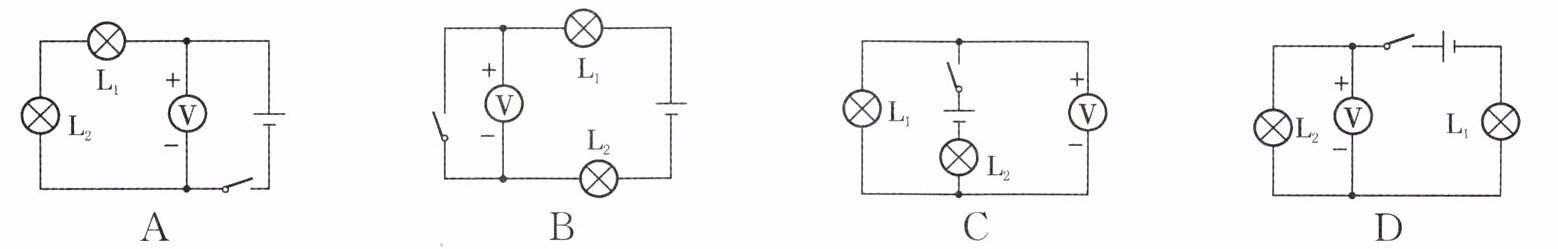 6. 下列电路图中,电压表能测灯 $ L_{1} $ 两端电压的是()