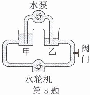 3. (教材 P71 材料改编)电路和水路有许多相似之处,在电路中,和如图所示的水路中的水泵作用相似的是()