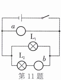 11. 如图所示,在两只灯泡 $ L_{1} $ 和 $ L_{2} $ 并联的电路中,a、b 表示电压表或电流表,则可判断:a 是______表,b 是______表。