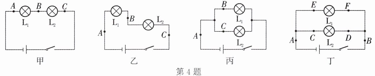 4. 如图甲、乙、丙、丁所示的电路图中,闭合开关后,下列关系正确的是()