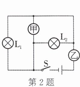 2. 如图所示,甲、乙是连接在电路中的两只电学仪表,闭合开关S后,小灯泡$L_{1}$、$L_{2}$均正常发光,则()