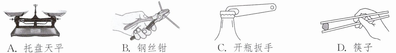 1. (2024·连云港)下列生活中几种常见的杠杆,其中属于费力杠杆的是 ()