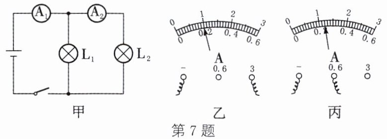 7. 小明要利用电流表测量通过小灯泡的电流,他连接了如图甲所示的电路。