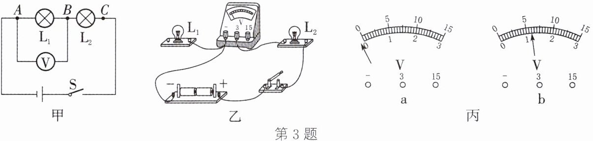 (4)排除故障后,测得电压表示数如图丙中b所示,则A、B两点间电压$U_{1}= $______V。