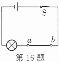 16. 在“探究导体电阻大小与哪些因素有关”的实验中,采用了“控制变量”的方法。如表所示为某实验小组在对“导体电阻大小可能与导体的长度、材料、横截面积有关”的猜想进行验证时,对所用导体相关物理量进行记录的一部分。