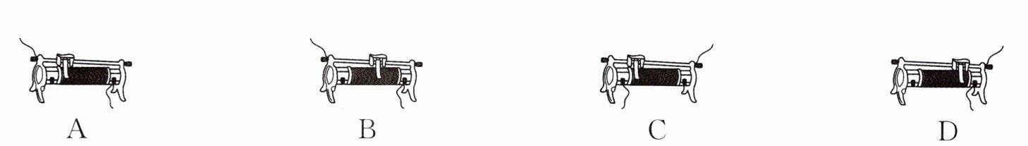 4. 下列是实验电路连接完毕后,滑动变阻器接入电路的四种情形,已经可以闭合开关进行实验的是