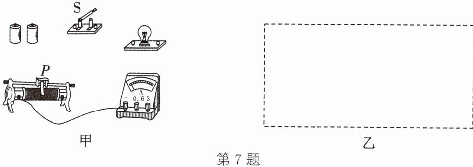 7. 如图甲所示为“滑动变阻器改变电路中的电流”的实验的电路。