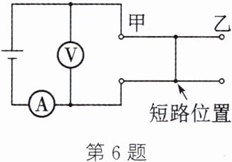 6. 在相距10 km的甲、乙两地间有两条输电线,已知每条输电线的电阻是100 Ω。现输电线在某处发生短路,为确定短路位置,检修员利用电压表、电流表和电源连成如图所示电路进行检测,当电压表示数为2.0 V时,电流表示数为80 mA,则短路位置距甲地的距离是多少千米?