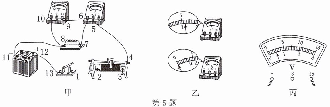 5. 小华用如图甲所示的电路测量合金丝的电阻,电源电压为6 V。
