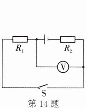 14. 如图所示,电源电压保持不变,$R_{1}= 8Ω,R_{2}= 4Ω$,开关 S 闭合,电压表示数为 4 V,则$R_{1}$两端的电压为______V,电源电压为______V。