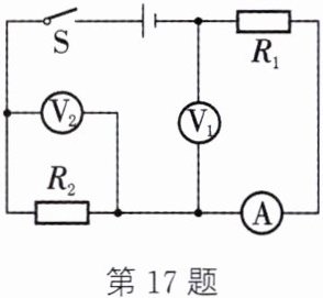 17. (2024·渭南临渭段考)如图所示,已知电源电压为 12 V,电压表$V_{1}$、$V_{2}$的规格相同,闭合开关 S,电压表$V_{2}$的示数为 8 V,电流表的示数为 0.2 A。