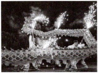 Guided by a big dragon ball, the dragon dancers make different kinds of movements while holding the cloth dragon. 3. ______ As many as 9 to 15 dancers use long poles to guide the dragon's head and snake-like body. Usually one dancer does tricks on the dragon. Tricks are often jumps and moves that make the dragon turn in different ways.