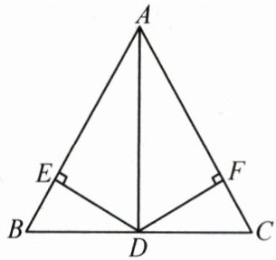 在$Rt△BED$和$Rt△CFD$中,$\begin{cases}BD = CD \\ BE = CF \end{cases}$,