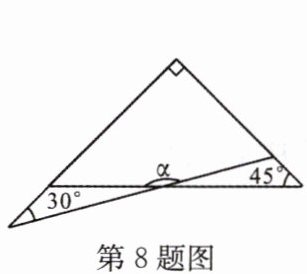 8.(2023·江西)一副三角板有两个直角三角形,如图叠放在一起,则$\angle \alpha$的度数是(