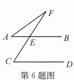 6.如图,已知$AB// CD$,若$\angle C= 70^{\circ},\angle F= 30^{\circ}$,则$\angle A$的度数为(