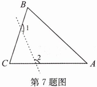 7.(2023·昆明)如图,在$\triangle ABC$中,$\angle C= 80^{\circ}$,沿图中虚线截去$\angle C$,则$\angle 1+\angle 2= $(