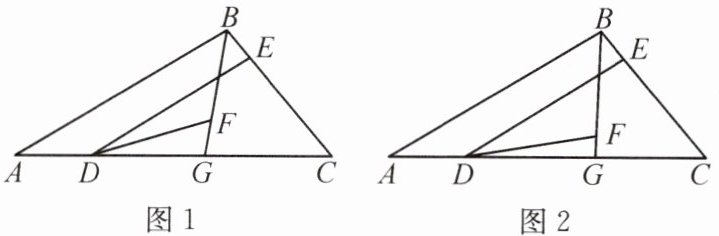 (1)如图1,BG平分$∠ABC$交AC于点G,DF平分$∠CDE$交BG于点F.探究$∠BFD与∠C$的数量关系,证明你的结论;