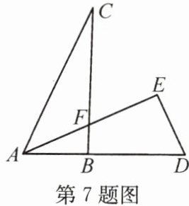 7.如图,$\triangle ABC\cong \triangle DEA$,点$A$,$B$,$D$在同一条直线上,$\angle D= 65^{\circ}$,求$\angle CFE$的大小.