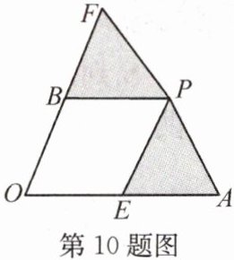 10.如图,$\triangle APE\cong \triangle BPF$,点$E$,$F分别在直线OA$,$OB$上,下列结论错误的是(