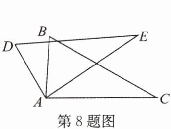8.如图,将$\triangle ABC绕点A旋转得到\triangle ADE$,若$\angle B= 40^{\circ}$,$\angle E= 30^{\circ}$,则$\angle DAE$的度数为(