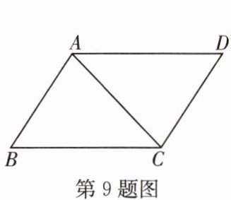 9.如图,已知$\triangle ABC\cong \triangle CDA$,则下列结论:①$AB= CD$,$BC= DA$;②$\angle BAC= \angle DCA$,$\angle ACB= \angle CAD$;③$AB// CD$,$BC// DA$.其中正确的有(
