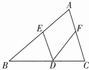 4.如图,$\triangle ABC$中,$\angle A=70^{\circ}$,$BE=BD$,$CD=CF$,求$\angle EDF$的度数.