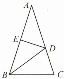 3.如图,$\triangle ABC$中,$AB=AC$,$AB$的垂直平分线$DE$交$AB$、$AC$于$E$,$D$.若$BD$平分$\angle ABC$,求$\angle BDC$的度数.
