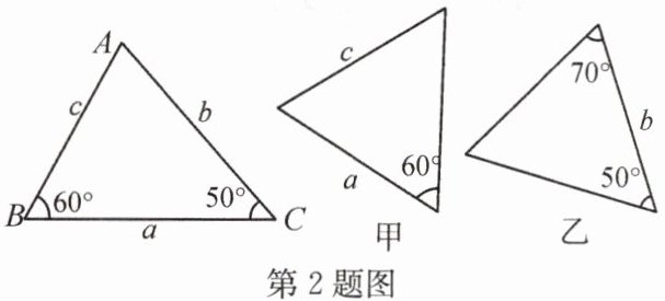 2.如图,已知△ABC三条边、三个角,则甲、乙两个三角形中和△ABC全等的图形是(