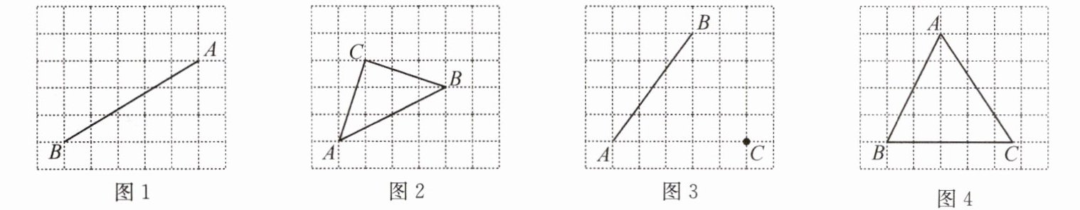 (3)在图3中,过C点作CM⊥AB; (4)如图4,点C在格线上,作BC边上的中线AD.