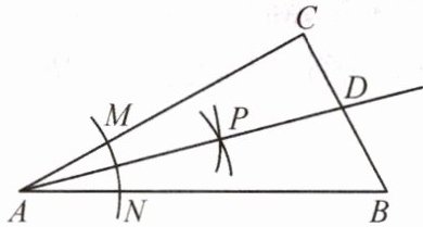 11.(2025·江岸)如图,在$Rt△ABC$中,$∠C= 90^{\circ }$,以顶点A为圆心,适当长为半径画弧,分别交AC,AB于点M,N,再分别以点M,N为圆心,大于$\frac {1}{2}MN$的长为半径画弧,两弧交于点P,作射线AP交BC于点D.若$△ABC$的面积是16,$AB+AC= 16$,求CD的长,并说明理由.