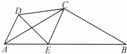 变式 4.如图,在$△ABC$中,$CA= CB,∠ACB= 120^{\circ }$,E 为 AB 上一点,点 D 在$△ABC$的外部,且$∠DCE= ∠DAE= 60^{\circ }$.求证:$AD+DE= BE$.