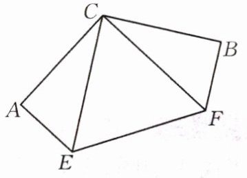 解:(补短法)延长 FB 至 G 使 $ BG = AE $,连接 CG,证 $ \triangle CBG \cong \triangle CAE $,$ \triangle CEF \cong \triangle CGF $,$ S_{五边形ACBFE} = $
