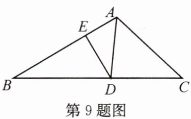 9.如图,$AD是△ABC$的角平分线,$DE⊥AB于点E$,$S_{△ABC}= 7$,$DE= 2$,$AB= 4$,则$AC$长是____