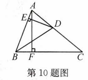 10.如图,$△ABC$中,$AB= 4$,$BC= 6$,$BD是△ABC$的角平分线,$DE⊥AB于点E$,$AF⊥BC于点F$,若$DE= 2$,则$AF$的长为____