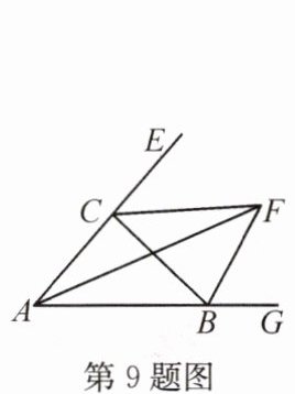 9.如图,点G在AB的延长线上,∠GBC,∠BAC的平分线相交于点F,连接CF.若∠AFB= 40°,则∠BCF的度数为