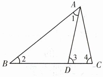 3. 如图,$\triangle ABC$中,$D$是$BC$上一点,$\angle 1=\angle 2$,$\angle 3=\angle 4$,$\angle BAC=63^{\circ}$,求$\angle DAC$的度数。