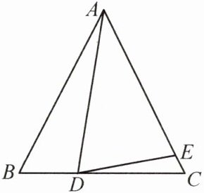6. 如图,在$\triangle ABC$中,$D$是$BC$上一点,$E$是$AC$上一点,$\angle B=\angle C$,$\angle ADE=\angle AED$,$\angle CDE=18^{\circ}$,求$\angle BAD$的大小。