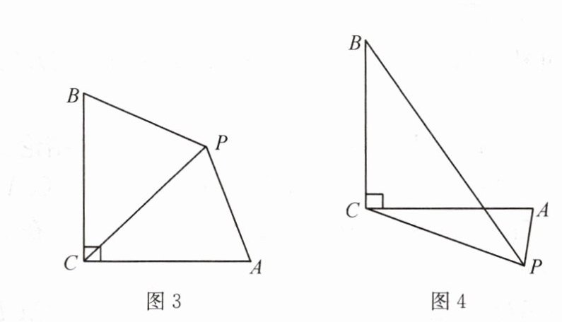 (2)如图 4,$ ∠ACB = 90^{\circ} $,点 $ P $ 在 $ AC $ 下方时,求 $ ∠APB $ 的大小。