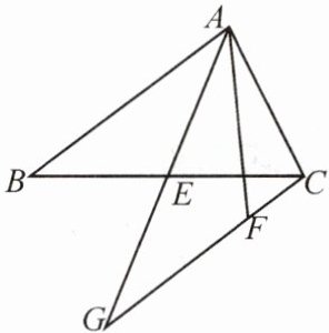 11.如图,在$\triangle ABC$中,点 E 为 BC 的中点,$CF// AB$交 AE 的延长线于 G 点,且$∠BAE= ∠EAF$,求证:$AF+CF= AB$.