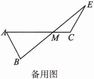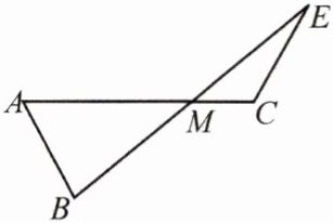 变式.如图,$AB = CE$,且$\angle A+\angle ACE = 180^{\circ}$,$AC交BE于M$,求证:$BM = EM$.